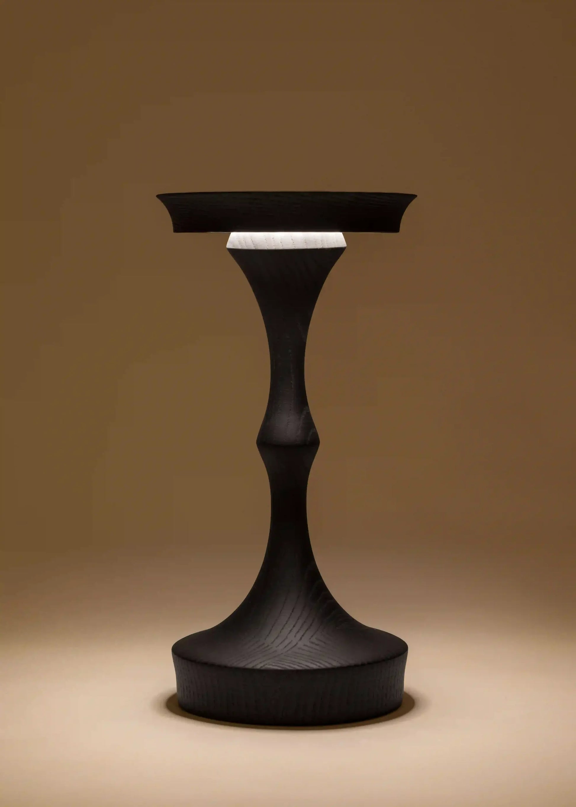 The George wireless lamp is a small column made of turned black